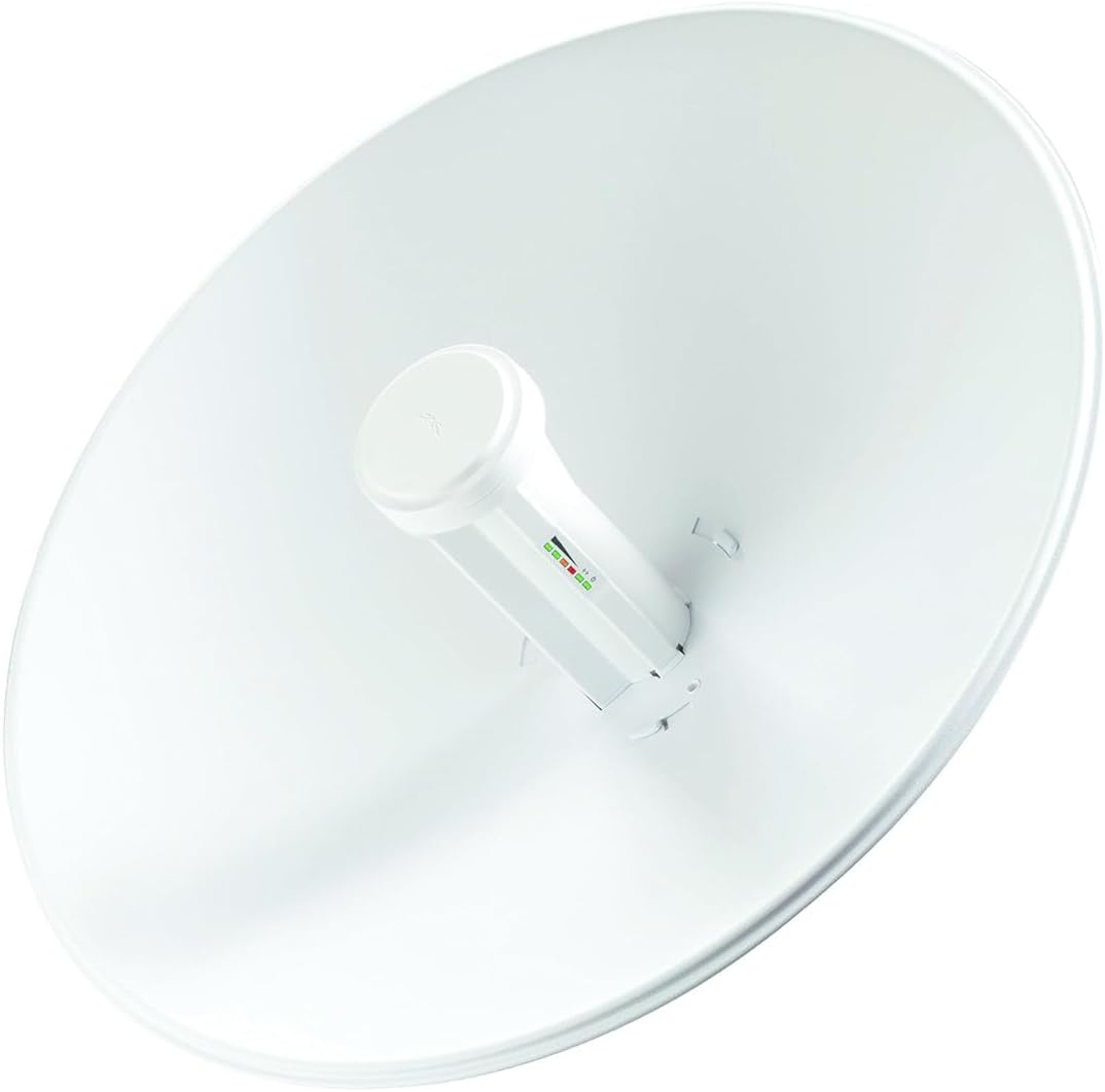 Antena MIMO parabólica con 25 dBi de ganancia; doble Polaridad Simultánea (Vertical y Horizontal, 2×2); seguridad: WPA, WPA2 y MAC ACL