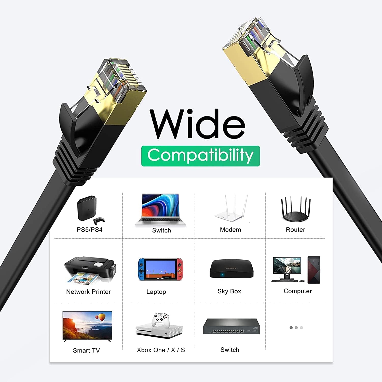 Este Cable Ethernet Cat7 admite ancho de banda de hasta 600MHz, por lo que puede conectarse a sus segmentos de LAN / WAN y equipos de red a velocidades máximas y navegar por la red, transmitir videos, música y otros datos a alta velocidad.