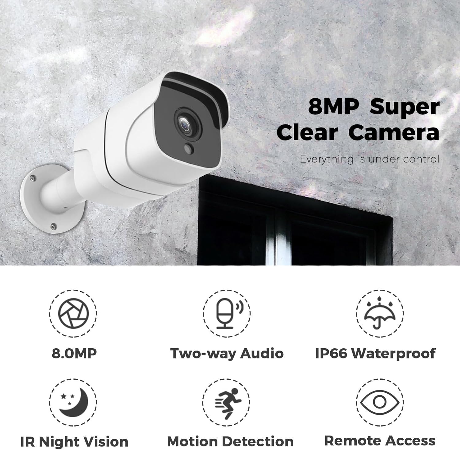 📝Visión nocturna y ultraclara de 8.0MP: cámara de vigilancia ultraclara real, sensor de imagen CMOS de 8MP incorporado, adecuado para seguridad en el hogar y negocios, puede obtener videos fluidos en tiempo real en teléfonos móviles y computadoras; LED infrarrojo incorporado de 18 piezas, puede alcanzar una distancia de visión nocturna de 30 m/98 pies.