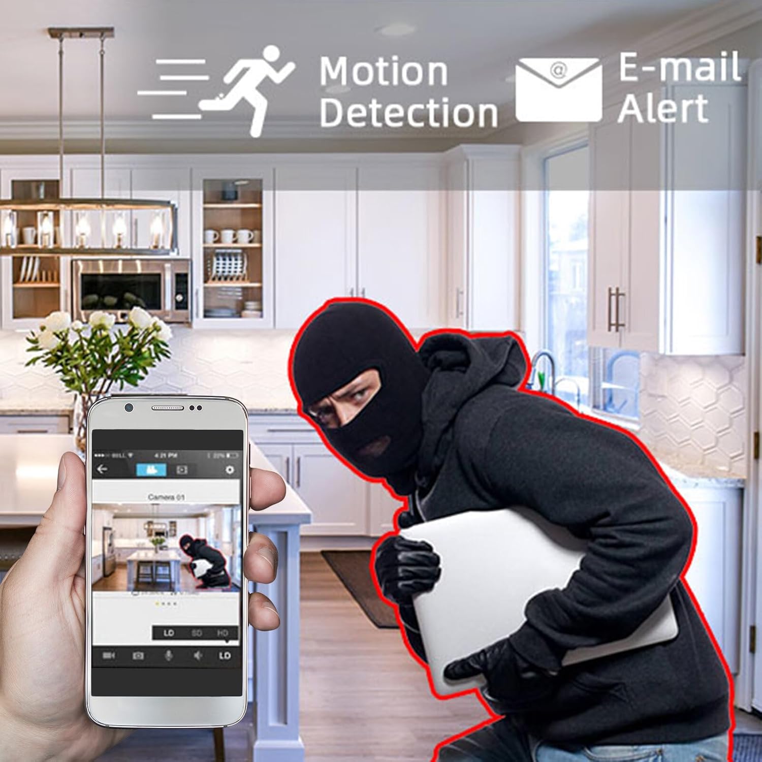 📝Detección de movimiento y alarma: tan pronto como la cámara de seguridad IP detecte a una persona, su teléfono recibirá pulsaciones de alarma de la aplicación. Así, podrás saber lo que sucede en tu casa y tomar las precauciones adecuadas a tiempo.