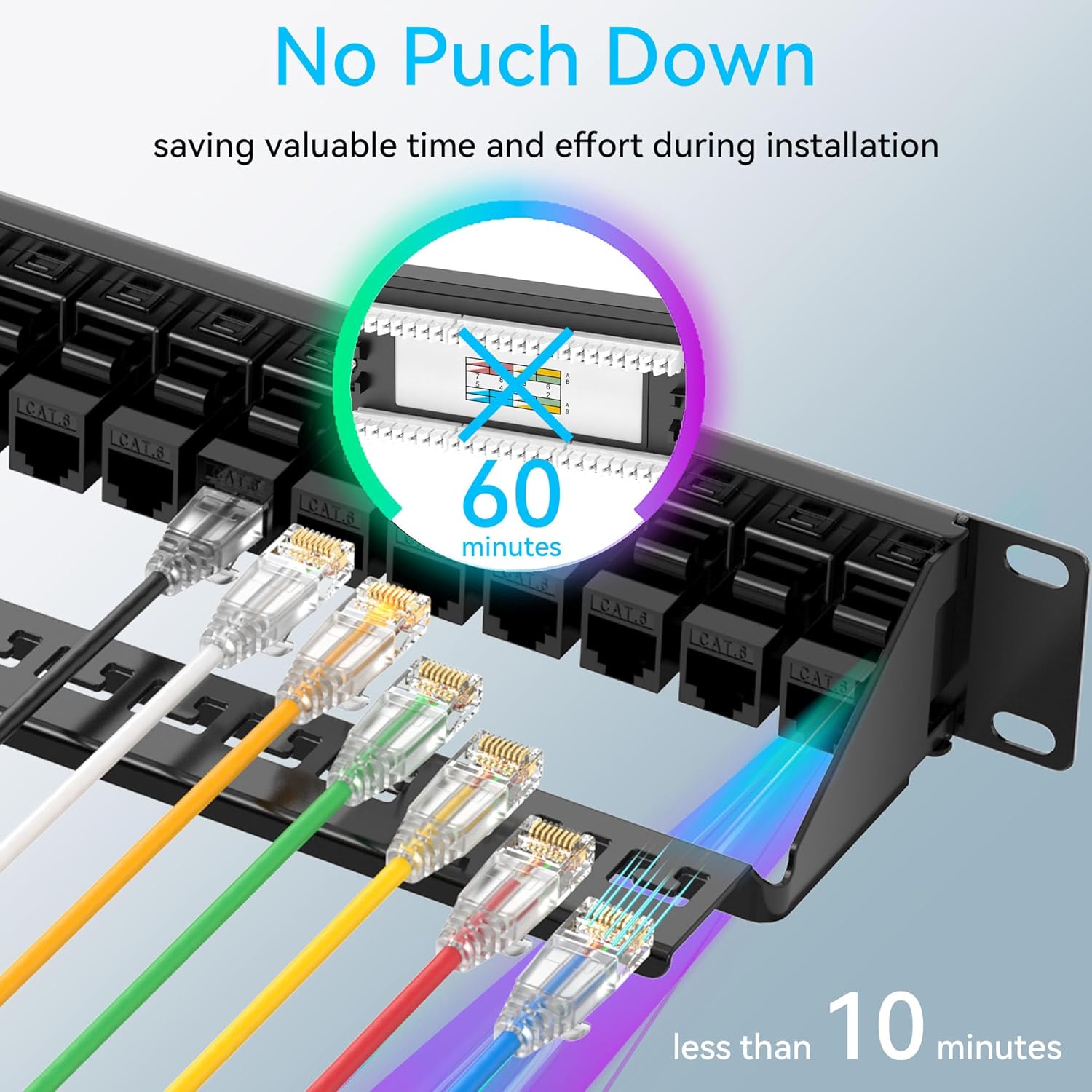 Ahorre tiempo y esfuerzo – El panel de conexión Keystone elimina la necesidad de terminaciones perforadas, ahorrando tiempo y esfuerzo valiosos durante la instalación. El panel de conexión Cat6 también es mucho menos propenso a fallar, combinado con un panel de conexión irfiable para gato 6.